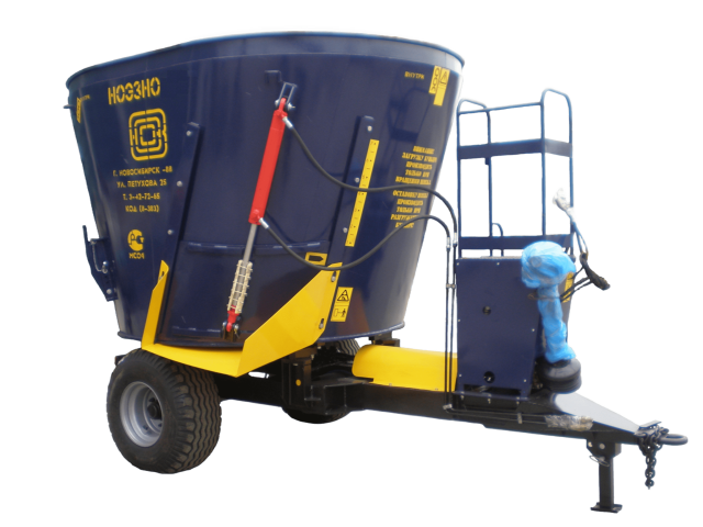Кормораздатчик с правосторонним выгрузным окном на одноосном шасси и объемом бункера 7,8 м3