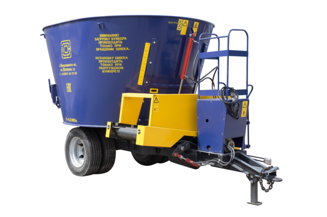 Основной рабочий орган – вертикальный конусообразный шнек в центре бункера с установленными на его витках ножами обеспечивает разрыхление грубых кормов, измельчение длинных стеблей, равномерное смешивание всех компонентов нормальной и повышенной влажности.