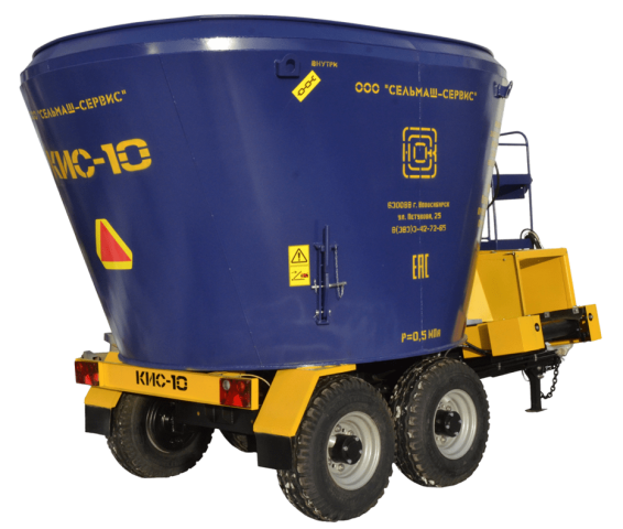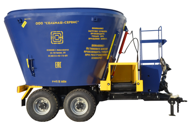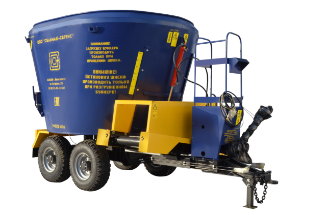 Основной рабочий орган – вертикальный конусообразный шнек в центре бункера с установленными на его витках ножами обеспечивает разрыхление грубых кормов, измельчение длинных стеблей, равномерное смешивание всех компонентов нормальной и повышенной влажности.