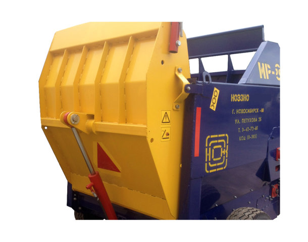 Основной рабочий орган – барабан-измельчитель, расположенный в передней части камеры, с помощью установленных на нём ножей (лезвий), обеспечивает частичное измельчение материала. Ножи барабана-измельчителя разбивают и расслаивают рулоны. Распушенная и частично измельчённая масса может, как раздаваться на кормовой стол, так и использоваться для приготовления и разбрасывания подстилки для крупного рогатого скота в животноводческих помещениях, а также разбрасываться по полю в качестве мульчирующего материала.
